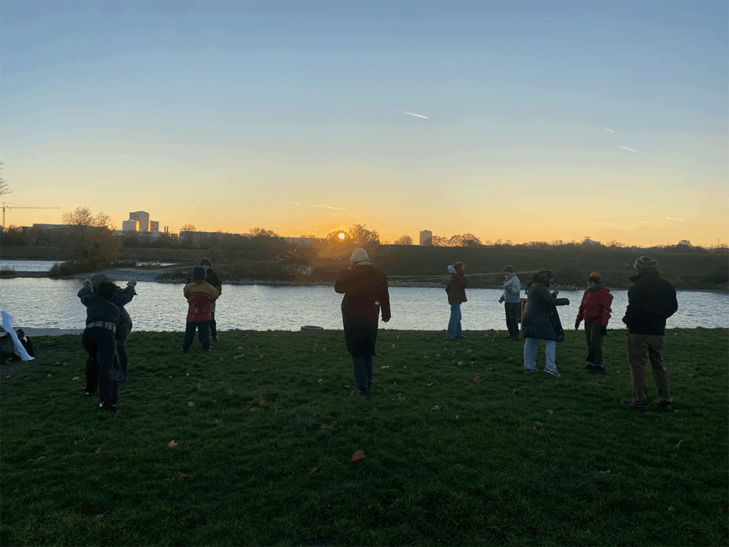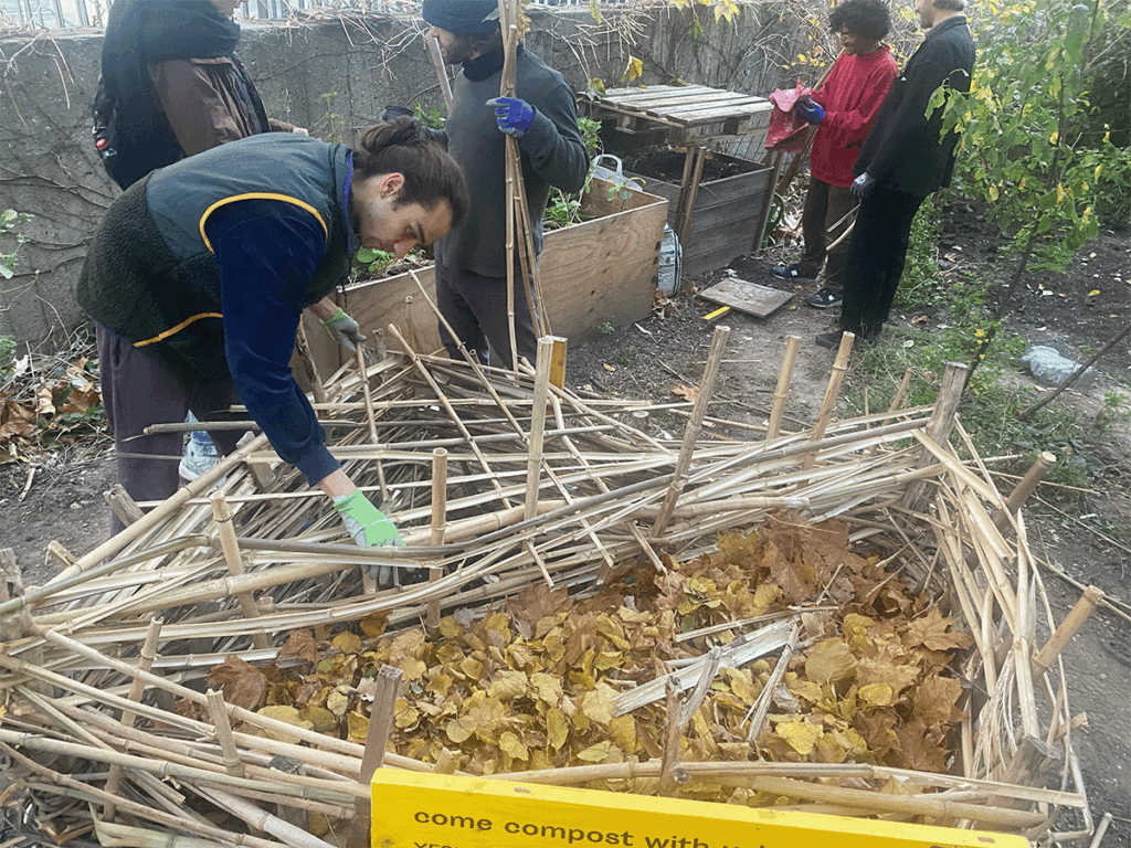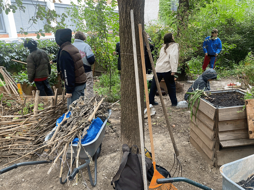 Wir werden unsere Komposte auf den Haufen bringen, mit einem Check-in und einer Wahrnehmungsübung beginnen, nach Pflanzen Ausschau halten und sie gießen und über „kollektives Handeln“ diskutieren.