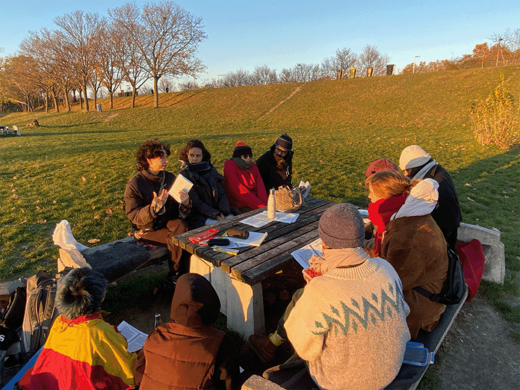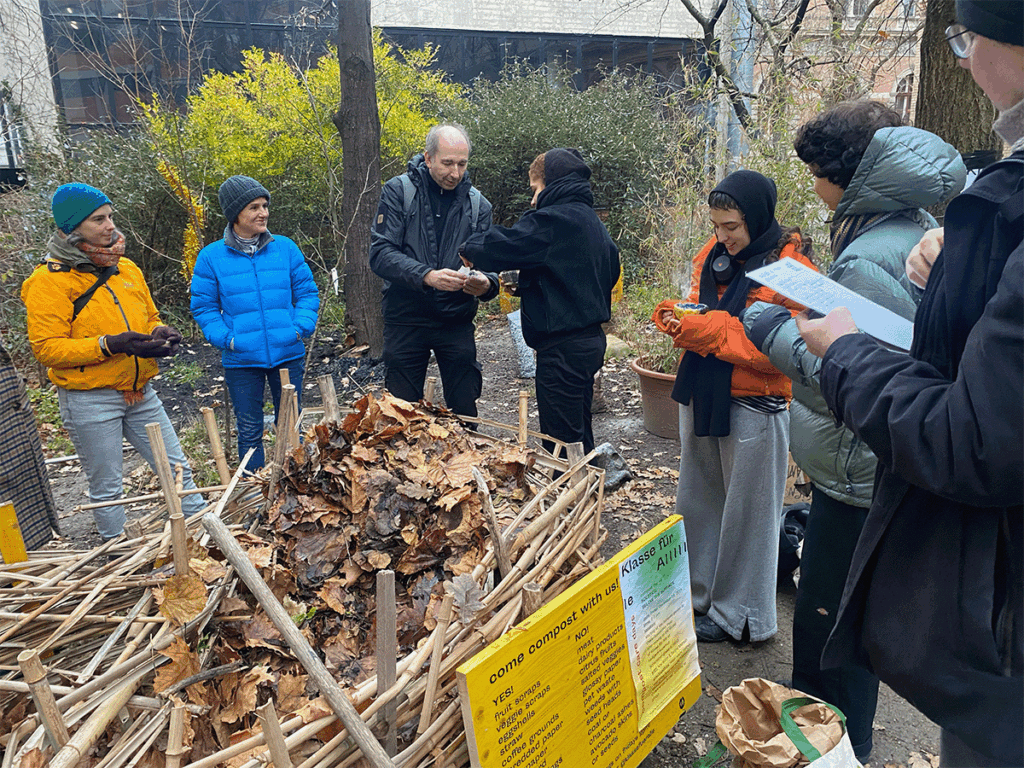 In der Klasse für Alle kompostieren wir seit 2022. Das compost collective wurde im Rahmen der Klimabiennale 2024 von den damaligen Kernmitgliedern Vik Bayer, Camille Belmin, Yeonwoo Chang, Kai Feldhammer, Vickie Ferreri, Nola Haag, Ivie Isibor, Andrea Lumplecker und Michael Reindel gegründet. Gemeinsam haben sie nicht nur Strategien entwickelt, um das Kompostieren in den Alltag zu integrieren, sondern praktizieren auch künstlerische Methoden im Zusammenhang mit Kompostieren, wie z. B. deep listening, Schreiben, Bewegen, Lesen, Fermentieren, Flechten und vieles mehr.