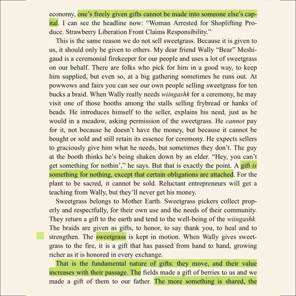 Together we will read excerpts from the book “Braiding Sweetgrass” by Robin Wall Kimmerer.