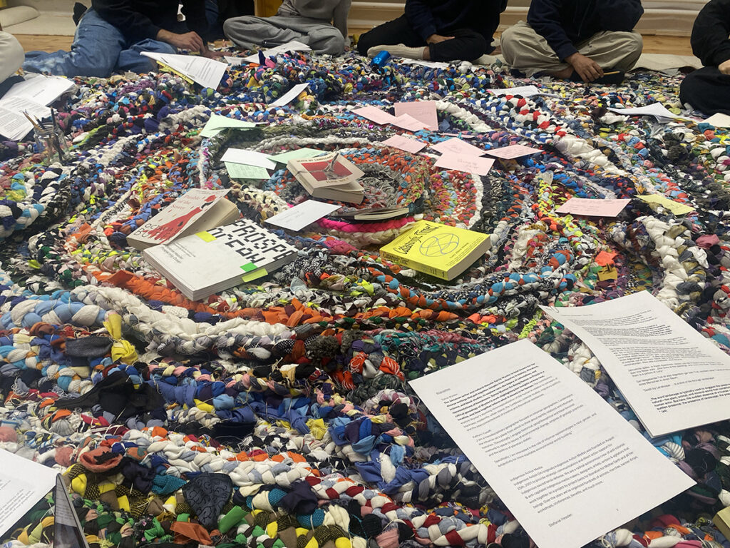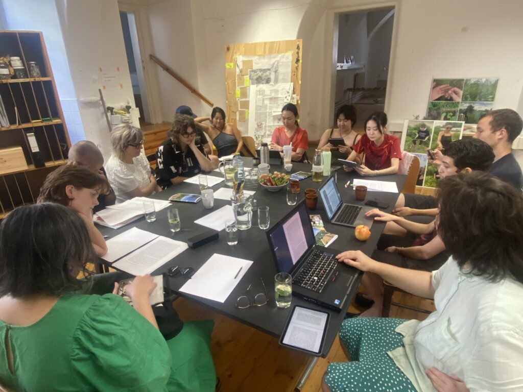 We started the reading session with excerpts from Slyvia Wynter’s “On Being Human as a Praxis” to question and critique the dominant Western idea of the “human” and concepts of modernity. This also involved reflecting on how narratives and forms of storytelling create realities and how we can – in dialogue with the texts we will read – experiment with methods of world-building and speculation in order to create alternatives to hegemonic ways of storytelling.