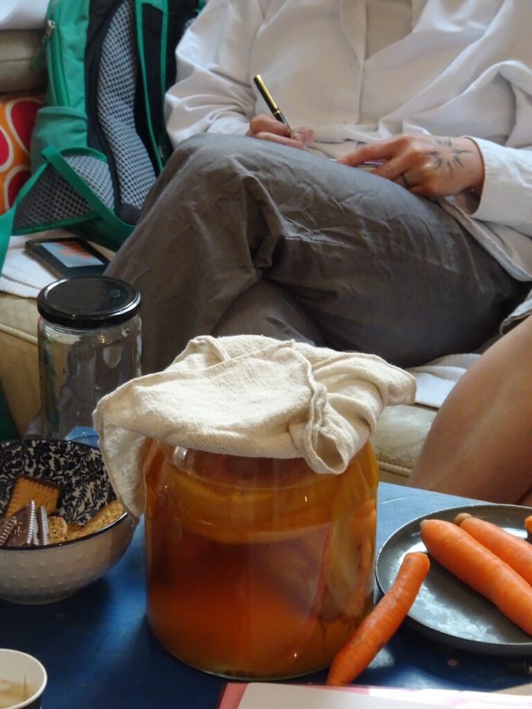 In diesem ersten Workshop von „correspondent transmutations“ lernen wir Kombucha und seinen SCOBY (Symbiotic Culture Of Bacteria and Yeast) kennen, während wir korrespondieren. Wir werden seinen Tee brauen und die Mütter eintauchen, während wir uns auf Körper (unsere eigenen und die anderer) konzentrieren, die sich im Raum bewegen und von ihm bewegt werden. Nach Partituren, die von einem materiellen und verkörperten Ansatz inspiriert sind, werden wir Briefe schreiben und miteinander austauschen, bevor wir die SCOBYs und das Kombucha ihren Schichtungs-, Fermentations- und Transformationsprozessen überlassen.